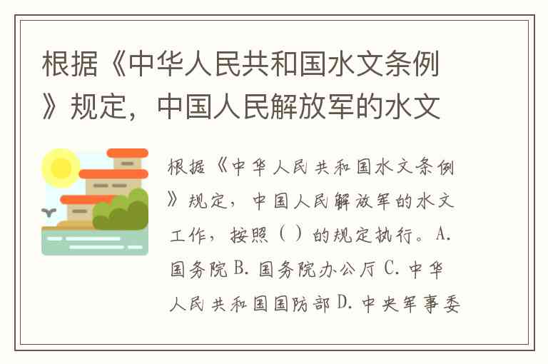 根据《中华人民共和国水文条例》规定,中国人民解放军的水文工作,按照()的规定执行。A.国务院 B.国务院办公厅 C.中华人民共和国国防部 D.中央军事委员会