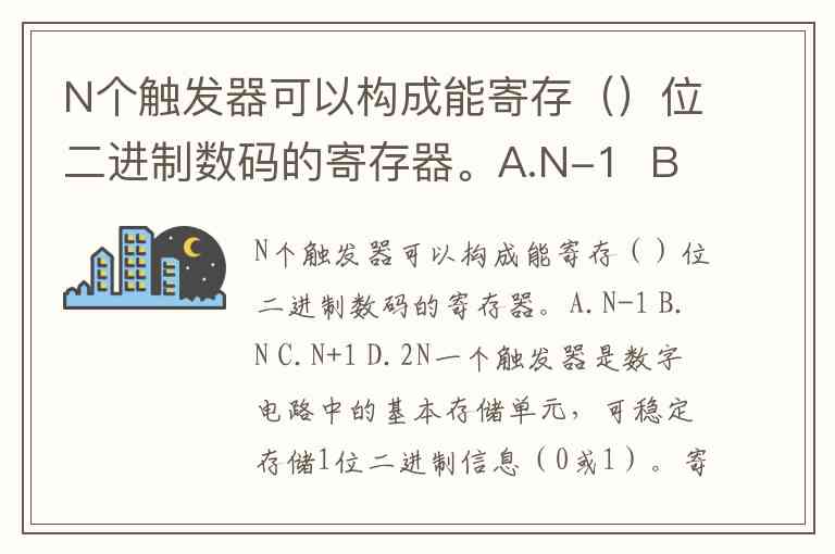N个触发器可以构成能寄存()位二进制数码的寄存器。A.N-1 B.N C.N+1 D.2N