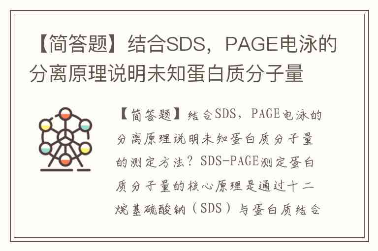 【简答题】结合SDS,PAGE电泳的分离原理说明未知蛋白质分子量的测定方法?