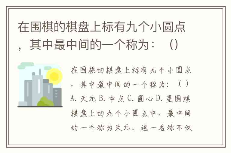 在围棋的棋盘上标有九个小圆点,其中最中间的一个称为:()A.天元 B.中点 C.圆心 D.星