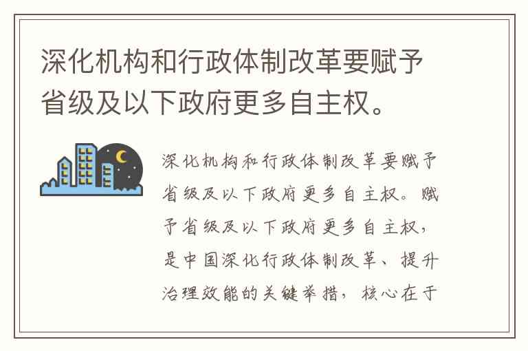 深化机构和行政体制改革要赋予省级及以下政府更多自主权。