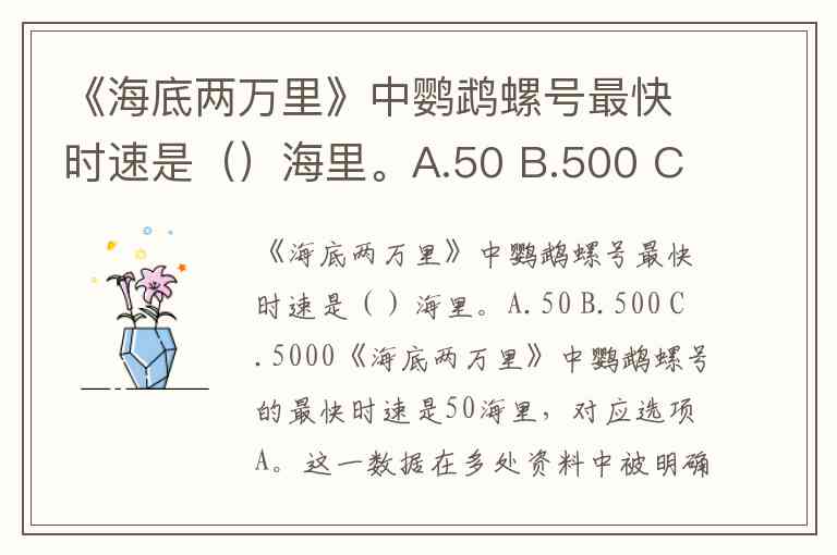 《海底两万里》中鹦鹉螺号最快时速是()海里。A.50 B.500 C.5000