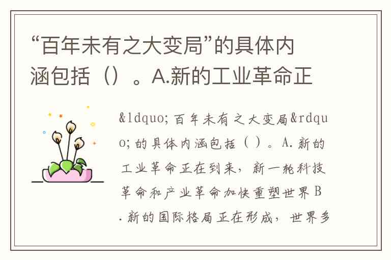 正确答案为ABCD。这四个维度相互交织:科技革命为格局变革提供生产力基础,新兴国家崛起推动治理体系变革,而发展模式创新则为变革注入文明内涵。理解这一“变局”,需把握其“趋势性变化”而非短期动荡的本质——它不是重复经济大危机或世界大战等历史事件,而是“近百年未发生过的”系统性重构,将深刻影响“人类历史进程和趋向”。