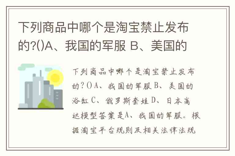下列商品中哪个是淘宝禁止发布的?()A、我国的军服 B、美国的浴缸 C、俄罗斯套娃 D、日本高达模型