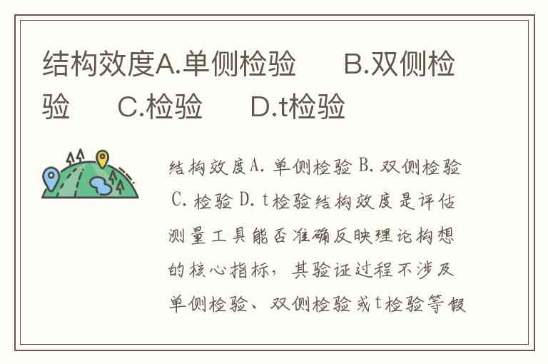单侧检验、双侧检验及t检验属于均值比较或参数估计的统计方法,用于判断样本均值与总体均值的差异(如t检验)或检验参数是否落在特定方向(如单侧检验)。而结构效度关注的是数据结构与理论构想的一致性,需通过因子分析等探索变量间潜在关系的方法实现,与均值比较无关。