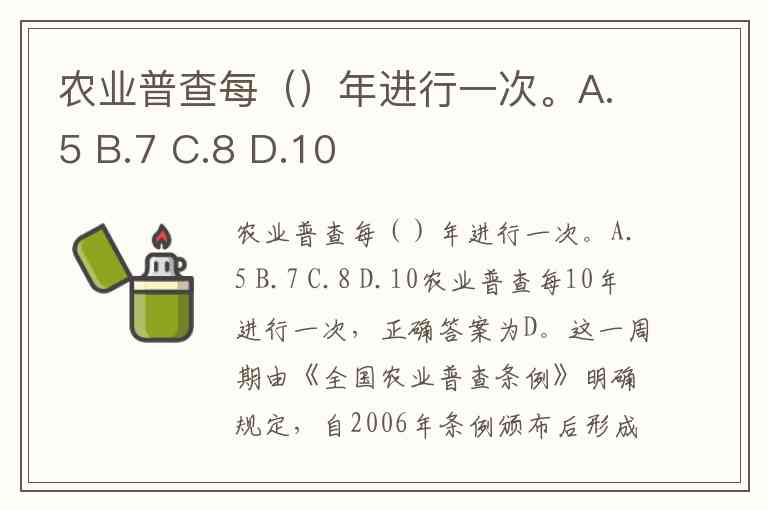 农业普查每()年进行一次。A.5 B.7 C.8 D.10