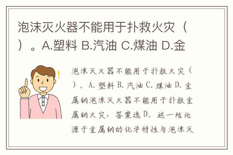 泡沫灭火器不能用于扑救火灾()。A.塑料 B.汽油 C.煤油 D.金属钠
