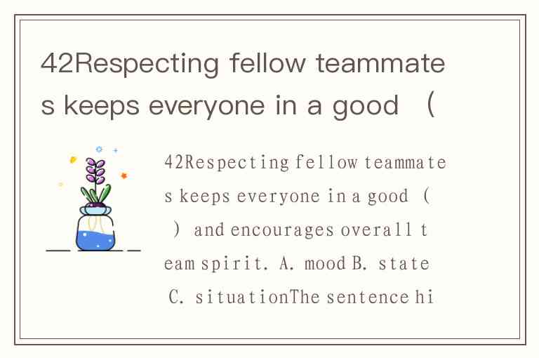 42Respecting fellow teammates keeps everyone in a good ( ) and encourages overall team spirit. A. mood B. state C. situation
