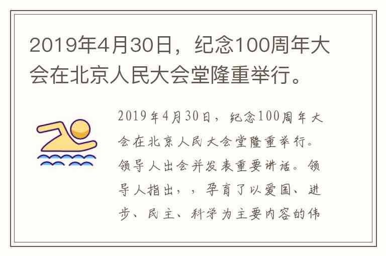 2019年4月30日,纪念100周年大会在北京人民大会堂隆重举行。领导人出会并发表重要讲话。领导人指出,,孕育了以爱国、进步、民主、科学为主要内容的伟大精神,其核心是() A. 爱国 B. 进步 C. 民主 D. 科学