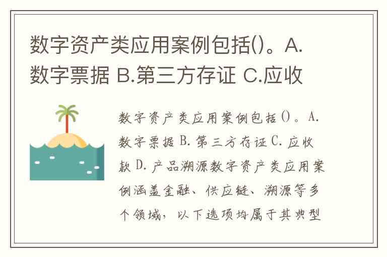 数字资产类应用案例涵盖金融、供应链、溯源等多个领域,以下选项均属于其典型应用: