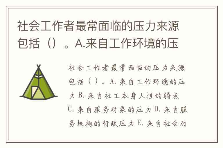综上,正确答案为A、C、D。这些压力源相互叠加形成"高压闭环":环境挑战消耗精力,服务对象需求考验情感,机构行政要求压缩专业自主空间,最终可能导致职业倦怠。打破这一循环需要从优化工作环境、完善机构支持体系和提升社会认知等多层面入手。