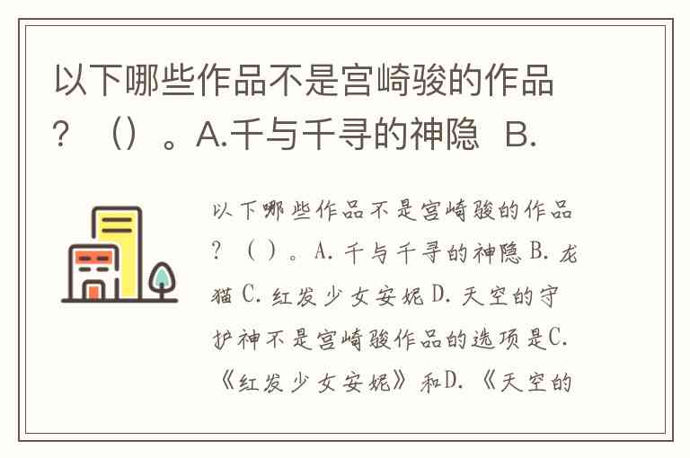 以下哪些作品不是宫崎骏的作品?()。A.千与千寻的神隐 B.龙猫 C.红发少女安妮 D.天空的守护神