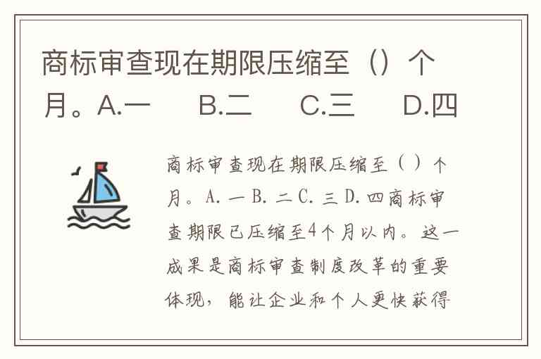 商标审查现在期限压缩至()个月。A.一 B.二 C.三 D.四