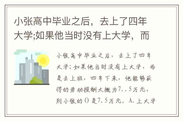 小张高中毕业之后,去上了四年大学;如果他当时没有上大学,而是去上班,四年下来,他能够获得的劳动报酬大概为7..5万元,则小张的()是7.5万元。A.上大学的成本 B.不上大学的成本 C.上大学的机会成本 D.上大学的心理成本