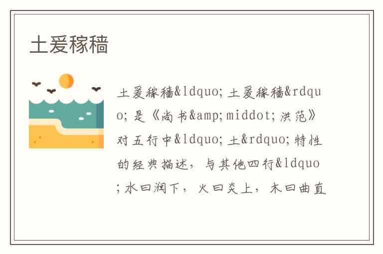 “土爰稼穑”是《尚书·洪范》对五行中“土”特性的经典描述,与其他四行“水曰润下,火曰炎上,木曰曲直,金日从革”的表述截然不同。这里的“爰”并非“曰”的通假字,而是“于焉”(在此)和“援引”的意思,暗含土性广博、难以用单一特征概括的深意。古人发现土能承载万物生长,但“稼穑”(种植与收获)仅是其功能之一,如同《融堂书解》所言“百物皆生于土”,故用“爰”字强调这是不得已的举例说明[15]。