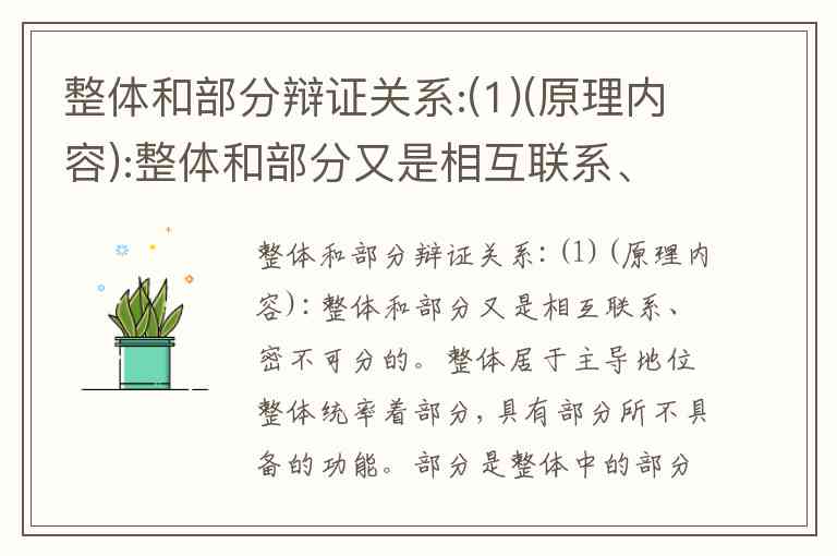 要判断选项中与整体和部分辩证关系相符的观点,需结合“整体统率部分、部分影响整体”的核心原理。以下是具体分析: