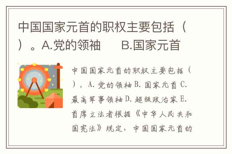 中国国家元首的职权主要包括()。A.党的领袖 B.国家元首 C.最高军事领袖 D.超级政治家 E.首席立法者
