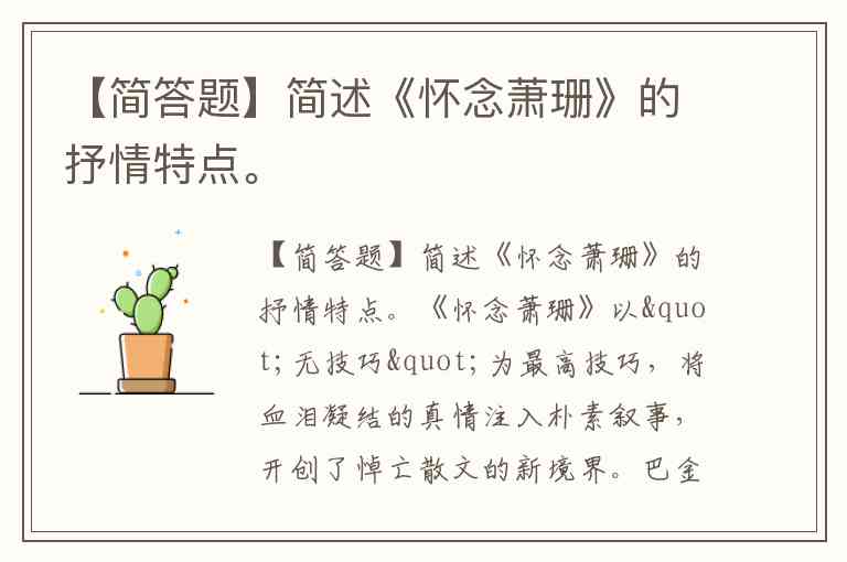 《怀念萧珊》以"无技巧"为最高技巧,将血泪凝结的真情注入朴素叙事,开创了悼亡散文的新境界。巴金摒弃华丽辞藻与刻意抒情,通过文革苦难中夫妻相濡以沫的生活细节,让深沉的爱与痛自然流淌,实现了个人情感与时代创伤的共振。
