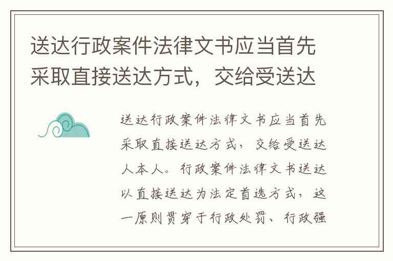 送达行政案件法律文书应当首先采取直接送达方式,交给受送达人本人。