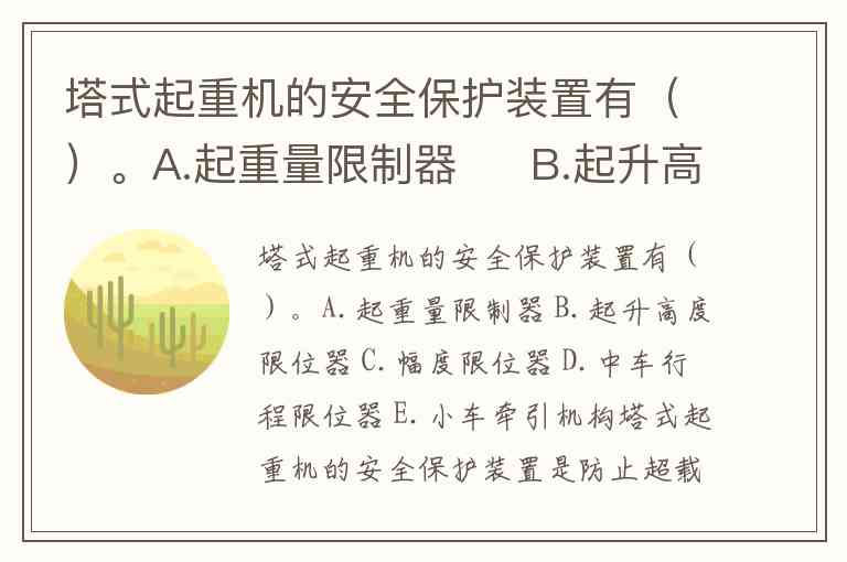 塔式起重机的安全保护装置有()。A.起重量限制器 B.起升高度限位器 C.幅度限位器 D.中车行程限位器 E.小车牵引机构