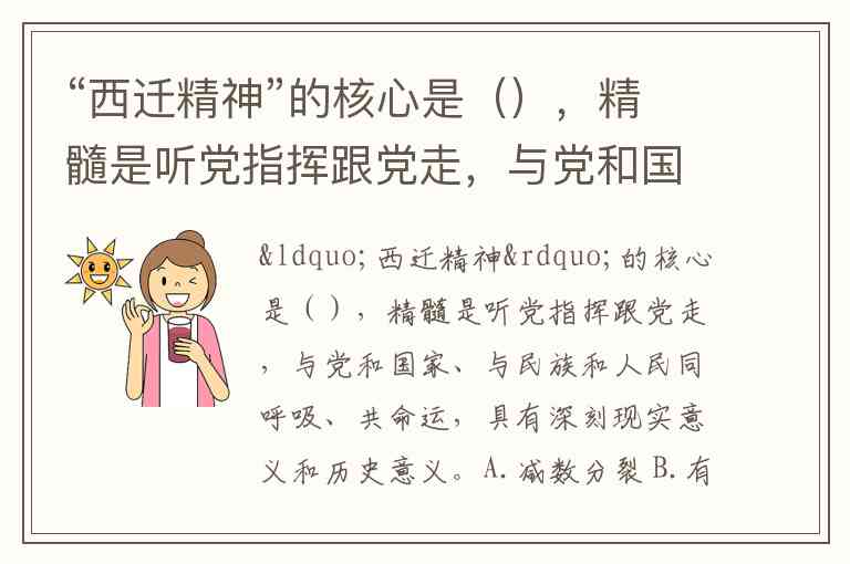 “西迁精神”的核心是(),精髓是听党指挥跟党走,与党和国家、与民族和人民同呼吸、共命运,具有深刻现实意义和历史意义。A.减数分裂 B.有丝分裂 C.二次分裂