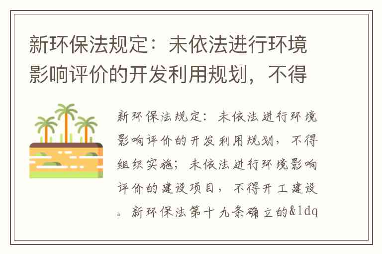新环保法规定:未依法进行环境影响评价的开发利用规划,不得组织实施;未依法进行环境影响评价的建设项目,不得开工建设。