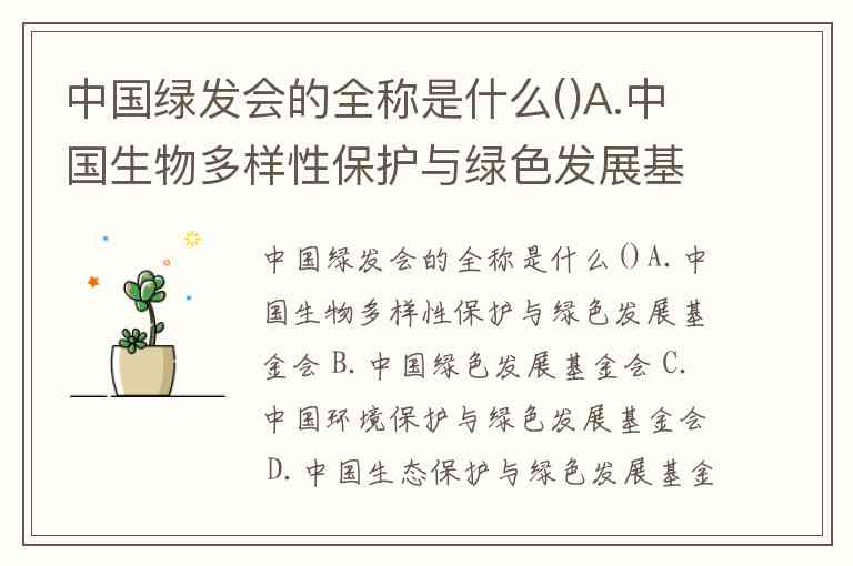 中国绿发会的全称是什么()A.中国生物多样性保护与绿色发展基金会 B.中国绿色发展基金会 C.中国环境保护与绿色发展基金会 D.中国生态保护与绿色发展基金会