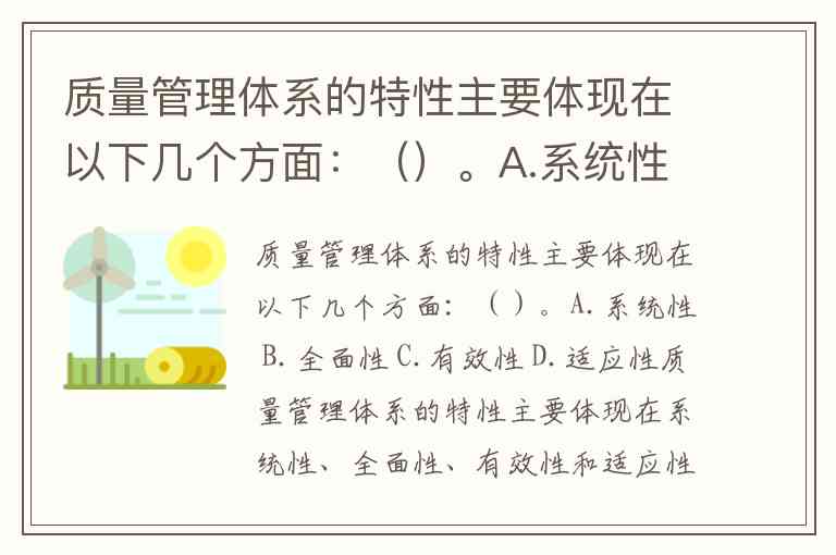 质量管理体系的特性主要体现在以下几个方面:()。A.系统性 B.全面性 C.有效性 D.适应性