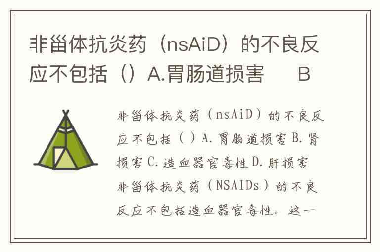 非甾体抗炎药(nsAiD)的不良反应不包括()A.胃肠道损害 B.肾损害 C.造血器官毒性 D.肝损害