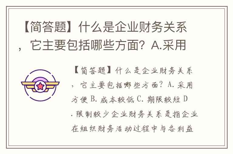 【简答题】什么是企业财务关系,它主要包括哪些方面?A.采用方便 B.成本较低 C.期限较短 D.限制较少