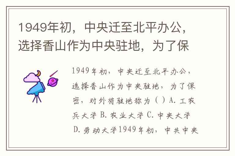 1949年初,中央迁至北平办公,选择香山作为中央驻地,为了保密,对外将驻地称为()A.工农兵大学 B.农业大学 C.中央大学 D.劳动大学