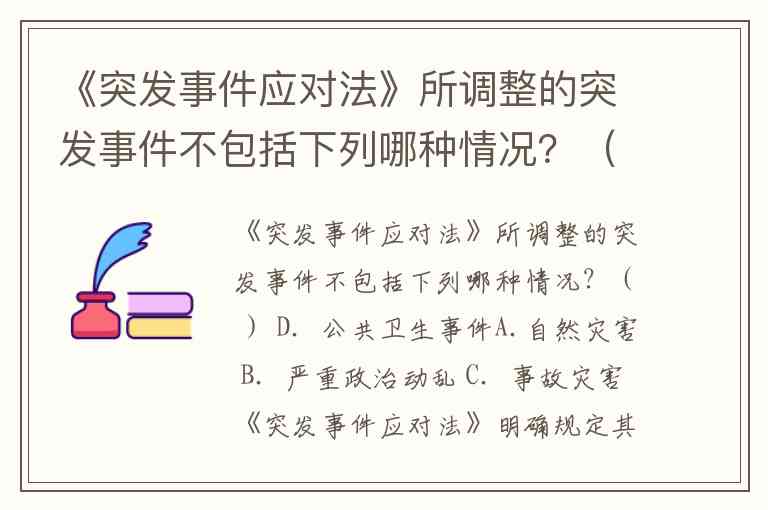 《突发事件应对法》所调整的突发事件不包括下列哪种情况?( ) D.公共卫生事件A.自然灾害 B.严重政治动乱 C.事故灾害