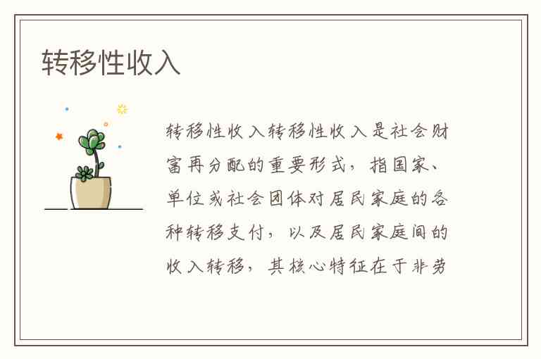 注:实物馈赠(如亲友赠送的食品)不计入转移性收入,需与现金转移区分。