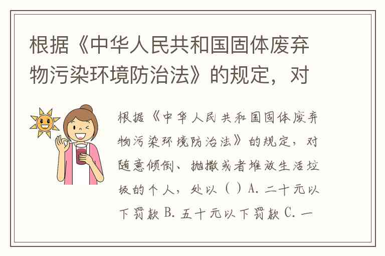 根据《中华人民共和国固体废弃物污染环境防治法》的规定,对随意倾倒、抛撒或者堆放生活垃圾的个人,处以()A.二十元以下罚款 B.五十元以下罚款 C.一百元以下罚款 D.两百元以下罚款