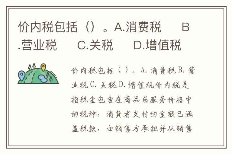 C. 关税:部分文档提及关税可能计入进口商品价格,但未明确其“价内税”属性,且主流分类中关税通常视为独立税种,故不选。