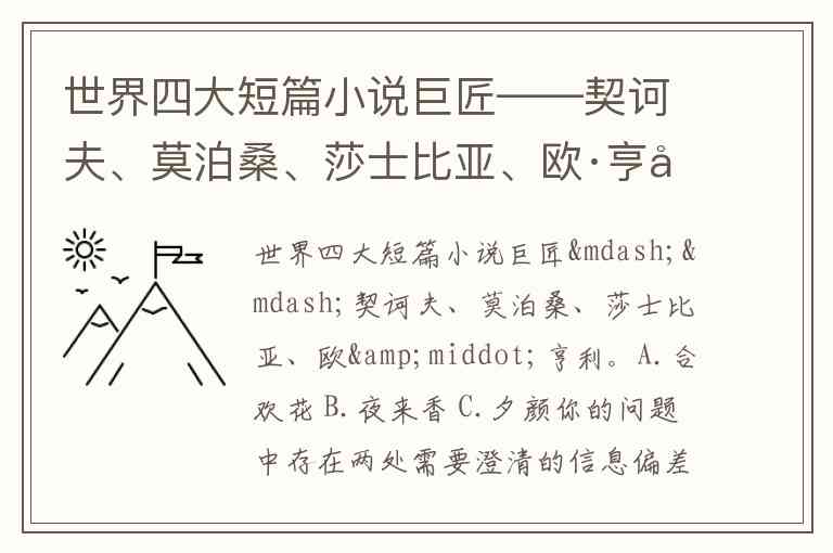 世界四大短篇小说巨匠——契诃夫、莫泊桑、莎士比亚、欧·亨利。A.合欢花 B.夜来香 C.夕颜