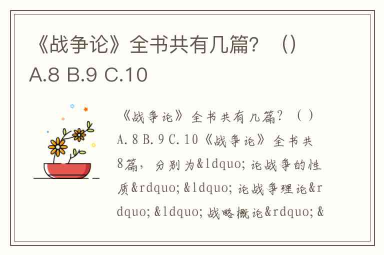 《战争论》全书共有几篇?()A.8 B.9 C.10
