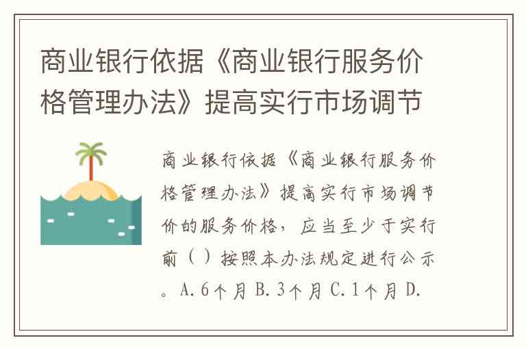 商业银行依据《商业银行服务价格管理办法》提高实行市场调节价的服务价格,应当至少于实行前()按照本办法规定进行公示。A.6个月 B.3个月 C.1个月 D.15日