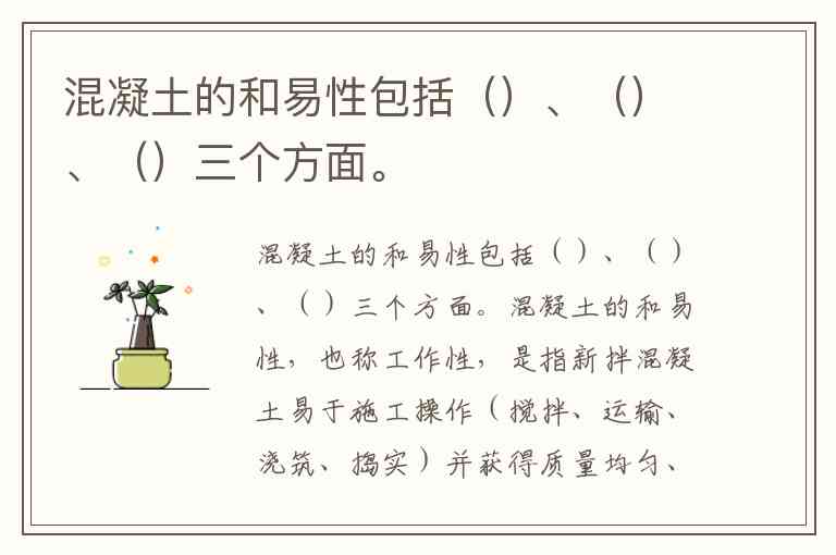 混凝土的和易性包括()、()、()三个方面。