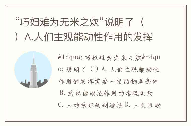 “巧妇难为无米之炊”说明了()A.人们主观能动性作用的发挥需要一定的物质条件 B.意识能动性作用的客观制约 C.人的意识的创造性 D.人类活动的受动性
