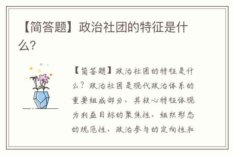 政治社团是现代政治体系的重要组成部分,其核心特征体现为利益目标的聚焦性、组织形态的规范性、政治参与的定向性和群众基础的广泛性。作为围绕特定利益集合的社会团体,它既不同于追求全面政治纲领的政党,也区别于纯粹的社会性组织,而是以影响公共政策为核心功能的政治参与载体。