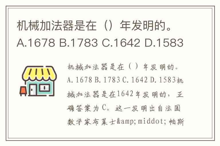 机械加法器是在()年发明的。A.1678 B.1783 C.1642 D.1583