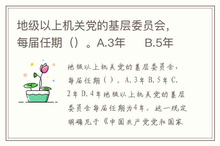 地级以上机关党的基层委员会,每届任期()。A.3年 B.5年 C.2年 D.4年