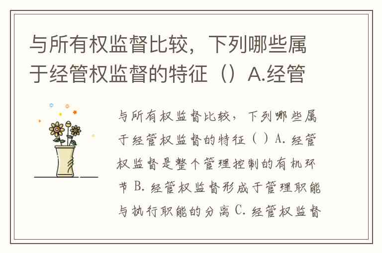 与所有权监督比较,下列哪些属于经管权监督的特征()A.经管权监督是整个管理控制的有机环节 B.经管权监督形成于管理职能与执行职能的分离 C.经管权监督是一种从上至下的监督 D.经管权监督是直接服务于管理者自身的