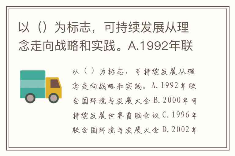以()为标志,可持续发展从理念走向战略和实践。A.1992年联合国环境与发展大会 B.2000年可持续发展世界首脑会议 C.1996年联合国环境与发展大会 D.2002年可持续发展世界首脑会议