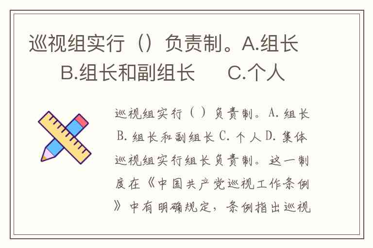 巡视组实行()负责制。A.组长 B.组长和副组长 C.个人 D.集体