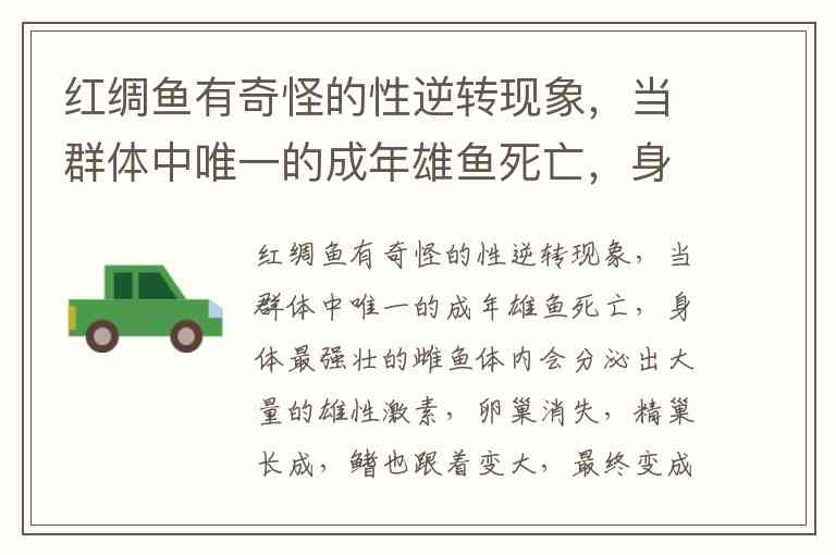 A选项正确:当红绸鱼群体中唯一的雄鱼死亡时,最强壮的雌鱼通过性逆转成为新的雄性繁殖者,这一机制确保了种群延续,避免因缺乏雄性而灭绝。这种适应性策略在石斑鱼等雌雄同体鱼类中普遍存在,是长期进化形成的繁殖保障机制。