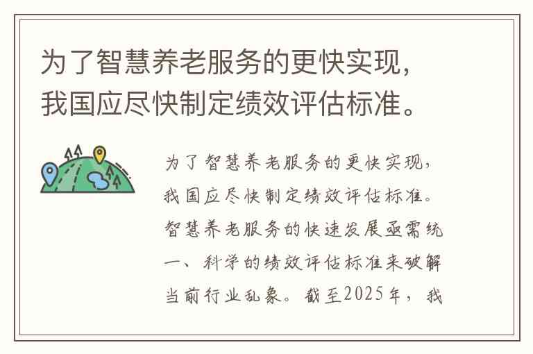 为了智慧养老服务的更快实现,我国应尽快制定绩效评估标准。