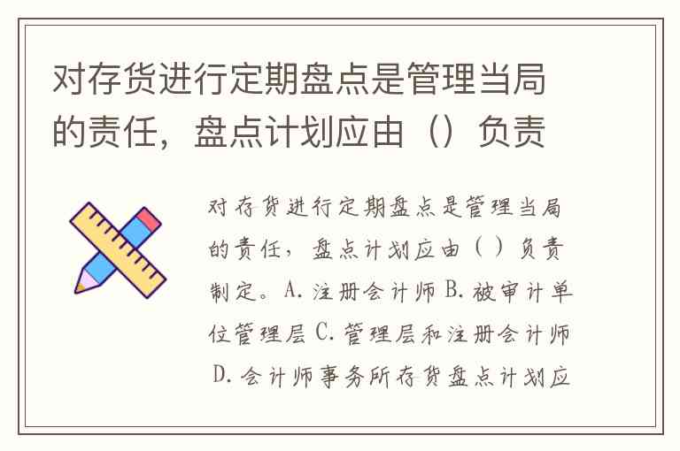对存货进行定期盘点是管理当局的责任,盘点计划应由()负责制定。A.注册会计师 B.被审计单位管理层 C.管理层和注册会计师 D.会计师事务所