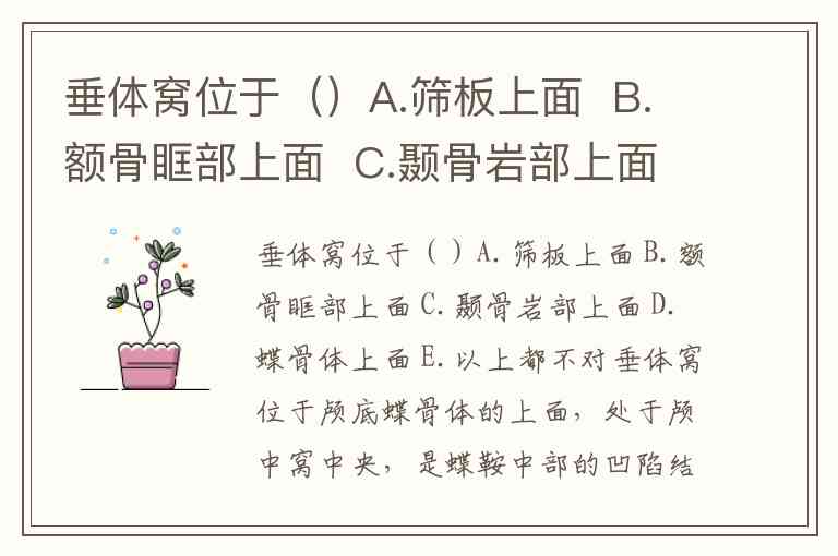 垂体窝位于()A.筛板上面 B.额骨眶部上面 C.颞骨岩部上面 D.蝶骨体上面 E.以上都不对